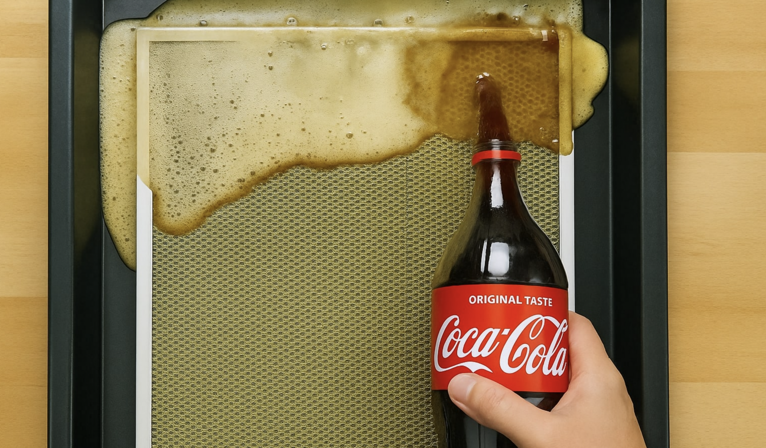 Le filtre de la hotte retient de la graisse à chaque cuisson. Avec le temps, cette accumulation devient collante, épaisse et particulièrement difficile à retirer. Même les dégraissants puissants ont du mal à dissoudre les couches anciennes d’huile et de saleté. Résultat, beaucoup passent un temps fou à frotter, à laisser tremper le filtre dans de l’eau chaude, voire envisagent d’en acheter un nouveau. Pourtant, une solution inattendue existe et elle se trouve peut-être déjà dans votre réfrigérateur. Aussi surprenant que cela puisse sembler, un peu de cola peut faire toute la différence.