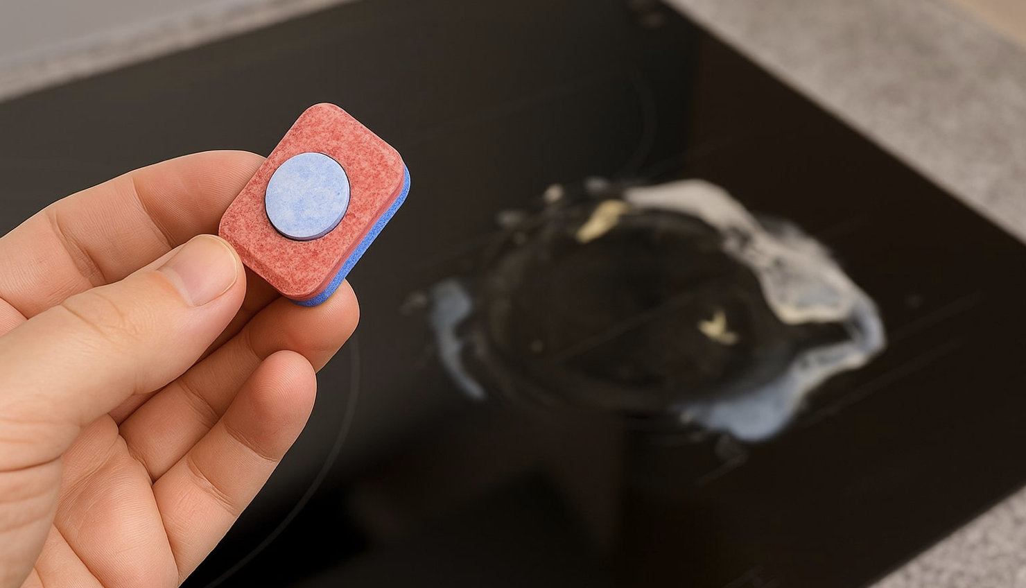 Beaucoup grattent, frottent ou utilisent des produits très agressifs pour essayer d’enlever rapidement les taches brûlées. Malheureusement, cela peut abîmer la surface, étaler la saleté ou même ne rien enlever du tout. Même les nettoyants puissants échouent souvent à ramollir la croûte durcie qui se forme lorsqu’un plat déborde. La pastille pour lave-vaisselle agit autrement. Au lieu d’agir brutalement, elle libère doucement des enzymes, des dégraissants et des agents nettoyants qui décomposent les résidus sans effort. Mais cette action n’est efficace que si la pastille est d’abord dissoute. La frotter directement sur la plaque ne sert presque à rien et peut même provoquer des rayures.